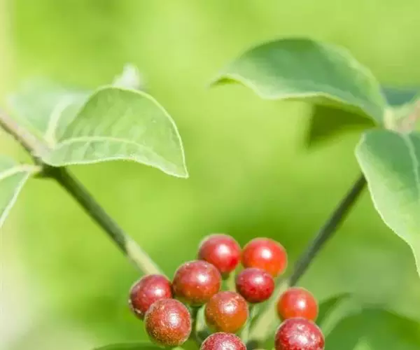 果实球形或近球形,由2个核果合生而成,直径5-8毫米,无毛,从绿色转红色,到成熟时为黑色;种子2颗,卵圆形,腹面扁平,背面凸起,具明显皱纹;胚倒而弯生。花期5月,果期5-8月。