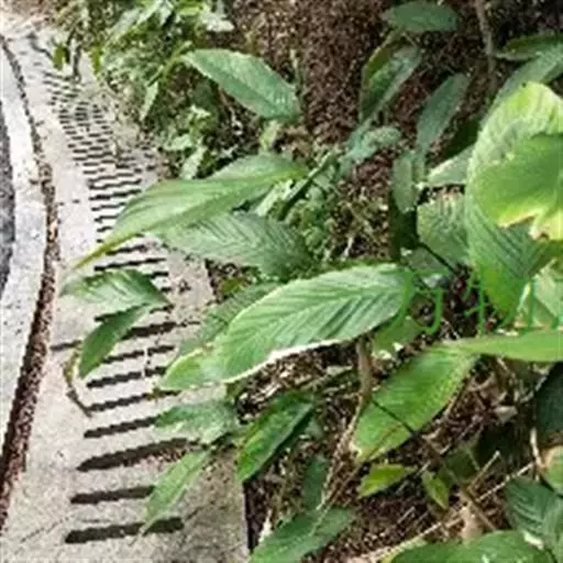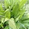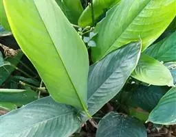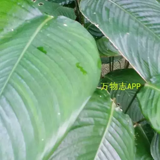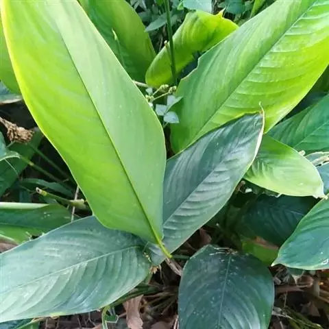 柊叶的植株 多年生草本, 株高1米,根茎块状。叶基生,长圆形或长圆状披针形,长25-50厘米,宽10-22厘米,顶端短渐尖,基部急尖,两面均无毛;叶柄长达60厘米;叶枕长3-7厘米,无毛。