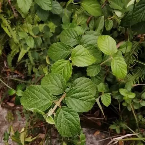 叶纸质,宽卵形、圆状倒卵形或倒卵形,稀近圆形,长4-10厘米,顶端圆或急狭而微凸尖,基部圆形或宽楔形,很少微心形,边缘有不整齐三角状锯齿,上面疏被短伏毛,中脉毛较密,下面密被绒毛,或有时仅侧脉有毛,侧脉10-12 (-13) 对,笔直伸至齿端,上面常深凹陷,下面显著凸起,小脉横列,并行,紧密,成明显的长方形格纹;叶柄长1-2厘米,被薄绒毛;无托叶。