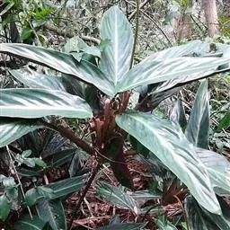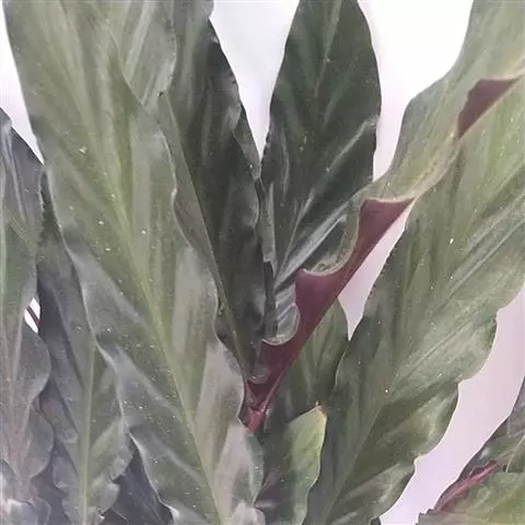 水竹芋为竹芋科多年生草本植物,植株高可达2米。叶互生,叶片卵形,叶色青绿,叶缘紫色,上被白粉,叶片长20厘米至40厘米,宽10厘米至15厘米,具较长叶柄。