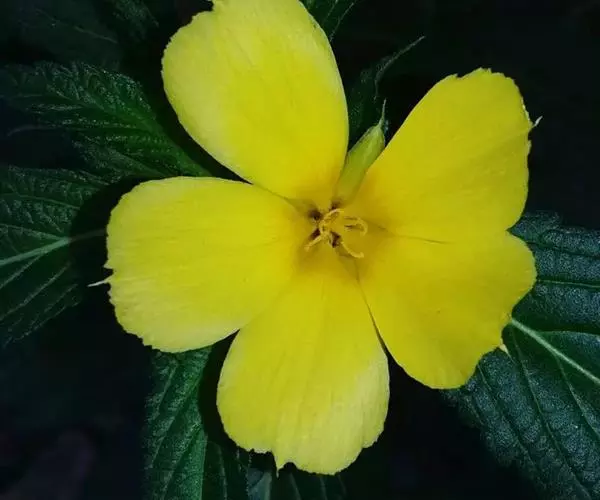 时钟花(学名:Turnera ulmifolia L.)是时钟花科时钟花属植物。多年生草本或亚灌木,株高30-80厘米。叶互生,椭圆形至倒阔披针形,边缘有锯齿,叶基有一对明显的腺体。花朵开于枝条末端的叶腋处,花冠金黄色,5瓣。蒴果,室背开裂或不开裂;种子少数至多数。花期春夏季。 [1-2]