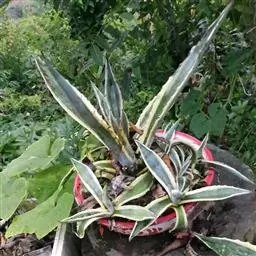 银边龙舌兰(学名:Agave angustifolia 'Marginata'):又名白缘龙舌兰,叶片两侧呈白色或略带淡红色。