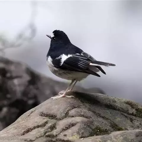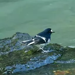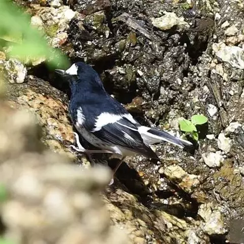 白喉红尾鸲,小型鸟类,体长14-16厘米。雄鸟额至枕钴蓝色,头侧、背、两翅和尾黑色,翅上有一大形白斑,…