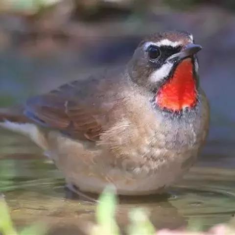 红尾歌鸲:体长13-15厘米。上体橄榄褐色。尾羽棕栗色,眼先和颊黄褐色,眼周淡黄褐色。…
