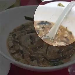 过桥豆腐是一道传统名肴,属于湘菜系。此菜柔滑细嫩,咸鲜适口,菜相美观,勾芡后,用小勺舀上一勺送入口中,…