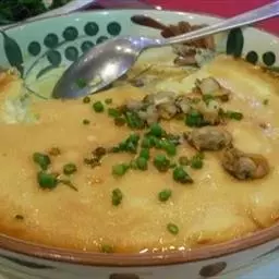6.加少许水淀粉勾芡一下,稍加收干,再淋回鱼头上;再淋上少许葱油增香。