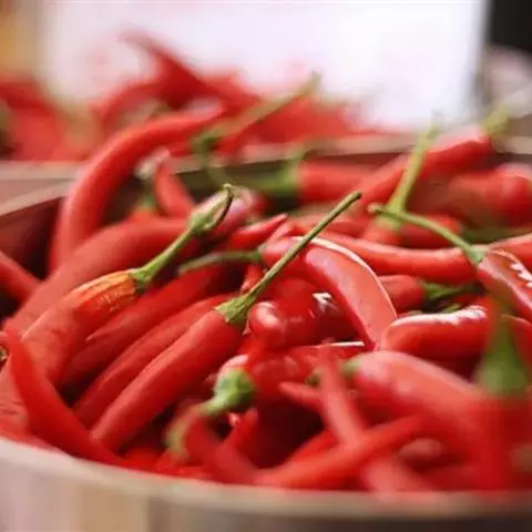 辣椒:开胃消食,暖胃驱寒、止痛散热,肌肤美容、降脂减肥,抵抗癌症、保护心脏,促进血液循环、降低血压 。