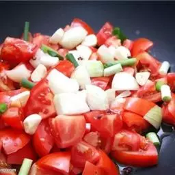 3.加葱姜蒜碎炒香。加糖生抽和胡椒粉调味。