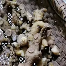 5.将姜切片、葱切段,铺在碗底。