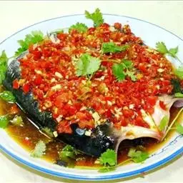 通常以鳙鱼鱼头、剁椒为主料,配以豉油、姜、葱、蒜等辅料蒸制而成。菜品色泽红亮、味浓、肉质细嫩。肥而不腻、口感软糯、鲜辣适口。