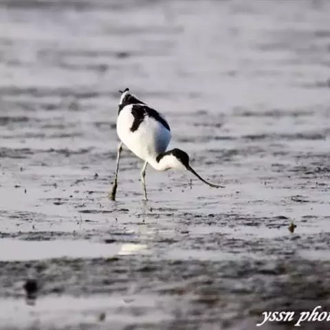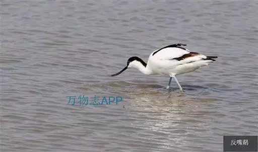 反嘴鹬(学名:Recurvirostra avosetta)是反嘴鹬科反嘴鹬属鸟类。中型涉禽,体长40-45厘米。嘴黑色,细长而向上翘。脚亦较长,青灰色。头顶从前额至后颈黑色,翼尖和翼上及肩部两条带斑黑色,其余体羽白色。飞翔时黑色头顶、黑色翅尖,以及背间部和翅上的黑带与白色的体羽和远远伸出于尾后的暗色脚形成鲜明对比,甚为醒目,野外不难识别。