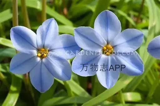 鳞茎数枚聚生,圆柱状,粗0.5-1厘米;鳞茎外皮褐色,破裂成纤维状,基部近网状,有时条裂。叶条形,比花葶短,宽3-8毫米。花葶圆柱状,高(20-)30-50厘米,中部以下被叶鞘;总苞单侧开裂,早落;伞形花序半球状,少花,较疏散;小花梗近等长,近等长于或短于花被片,基部无小苞片;花长,狭钟状,蓝色;花被片狭矩圆形至狭卵状矩圆形,先端钝圆,长11-14(-17)毫米,宽3-5.5毫米,边缘全缘,外轮的常比内轮的稍短而宽;花丝近等长,常为花被片长的4/5,基部合生并与花被片贴生,合生部分高约1毫米,内轮的基部扩大,有时扩大部分的每侧各具1齿,外轮的锥形,极少在基部扩大;子房倒卵球状,具3圆棱,腹缝线基部具明显凹陷的蜜穴;花柱常比子房长2-3倍;柱头点状。花果期8-10月。