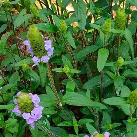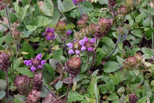 多年生草本,具密生须根的匍匐地下根茎。茎直立上升,基部常伏地,高15-30厘米,钝四棱形,具条纹,密被扁平的具节硬毛。叶卵形至卵状披针形,长1.5-3厘米,宽1-1.3厘米,先端急尖,基部圆形,边缘具浅波状至圆齿状锯齿,两面均密被具节硬毛,间或有时多少脱落,侧脉2-3对,不明显,叶柄长0.5-1.5厘米,近于扁平,近叶基处有不明显狭翅,被硬毛;最上一对茎叶直接下承于花序或有一小段距离,近于无柄。轮伞花序通常6花,多数密集组成顶生长2-3厘米宽2厘米的穗状花序,每一轮伞花序其下承以苞片,苞片宽大,近心脏形,宽0.8-1厘米,先端具长约2毫米的骤然长渐尖的尖头,外面密被具节硬毛,内面无毛,边缘明显具硬毛,膜质,脉纹放射状,自基部发出,先端网结,多少显著;花梗极短,长不及1毫米,具硬毛。花萼紫色,管状钟形,连齿在内长约1厘米,背腹扁平,脉10,显著,其间网脉连结,脉上明显有具节硬毛,齿缘具纤毛,萼檐二唇形,上唇扁平,宽大,近圆形,长6毫米,宽近5毫米,先端近截形,具3个短尖齿,中齿宽大,侧齿细小,下唇较窄,宽约3毫米,2深裂,裂片达唇片的中部,披针形,具刺尖头。花冠深紫至蓝紫色,长约15(18)毫米,冠筒长10毫米,近基部宽约1.5毫米,向上在前方逐渐膨大,在喉部稍为缢缩,宽达4毫米,外面无毛,内面近基部有一略倾斜的鳞毛毛环,冠檐二唇形,上唇长圆形,长约5毫米,宽约4毫米,龙骨状,内凹,先端微缺,外面在脊上有一明显的硬毛带,内面无毛,下唇宽大,长5毫米,宽6毫米,3裂,中裂片较大,近圆形,边缘具波齿状小裂片,侧裂片长圆形,细小,下垂。雄蕊4,前对较长,均伸出于冠筒,花丝分离,扁平,无毛,前对花丝在顶端明显有长过于花药的钻形裂片,后对者则不甚显著,花药2室,室极叉开。花柱丝状,略伸出于雄蕊之上,先端相等2浅裂。花盘近平顶。子房棕褐色,无毛。小坚果卵珠形,长1.5毫米,宽1毫米,背腹略扁平,顶端浑圆,棕色,无毛。花、果期自6月至翌年1月。