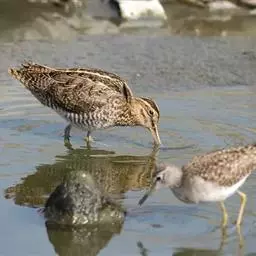 泽鹬:小型涉禽,体长19-26厘米。嘴长,相当纤细,直而尖。颜色为黑色,基部绿灰色,脚细长,…