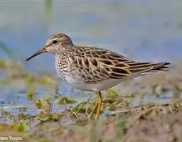 青脚滨鹬是丘鹬科滨鹬属鸟类。小型涉禽,体长12-17厘米。外形大小和长趾滨鹬相似。嘴黑色,脚黄绿色。…