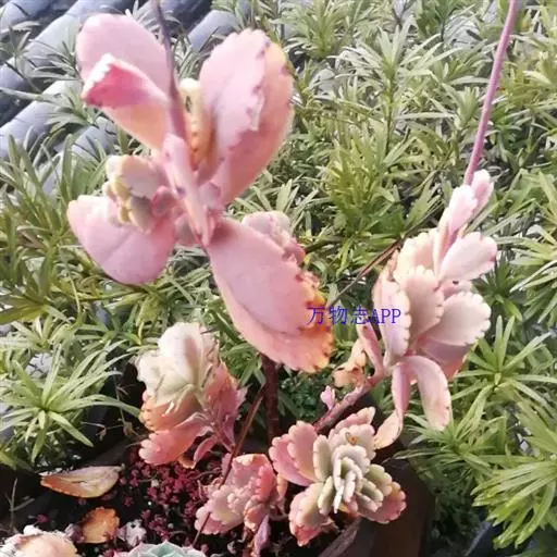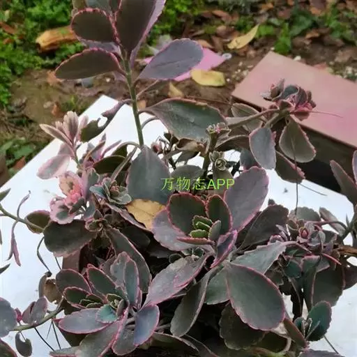 江户紫,景天科伽蓝菜属草本植物,是多年生草本花卉。花白色,但栽培中很少能见到花,常作观叶植物栽培。…