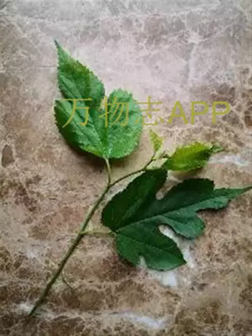 灌木或小乔木,树皮灰褐色,冬芽大,圆锥状卵圆形。叶卵形,长5-14厘米,宽3.5-12厘米,先端急尖或尾状,基部楔形或心形,边缘具粗锯齿,不分裂或3-5裂,表面粗糙,密生短刺毛,背面疏被粗毛;叶柄长1-1.5厘米,被毛;托叶线状披针形,早落。雄花序长1-1.5厘米,被柔毛,雄花绿色,具短梗,花被片卵形,花药黄色;雌花序球形,长约1厘米,密被白色柔毛,雌花花被片长圆形,暗绿色,花柱很长,柱头2裂,内面被柔毛。聚花果短椭圆形,直径约1厘米,成熟时红色或暗紫色。花期3-4月,果期4-5月。