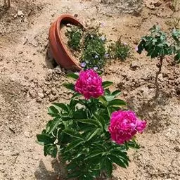 进行盆栽时,栽植季节以9~10月为最好。盆栽牡丹应选择适应性强、早开花、花型较好的洛阳红、胡红、赵粉等品种。植株宜选用芍药作砧木嫁接的3~4年小棵牡丹或具有3~5个枝干的分株苗。盆栽时,盆底可用粗砂或小石子铺3~5厘米厚,以利排水。盆土宜用黄砂土和饼肥的混合土,或用充分腐熟的厩肥、园土、粗砂以1:1:1的比例混匀的培养土。填土要使根系舒展,不能卷曲;覆土后要用手压实,使根系与泥土紧密接触,才易于成活。上盆后浇一次透水,放半阴处缓苗。转入正常管理后,可放置向阳处,保证其有充分的阳光照射。生长期间要经常松土,每隔半个月左右施一次