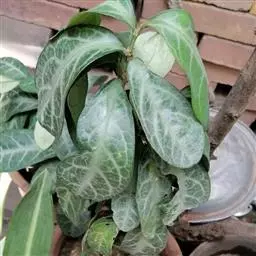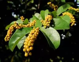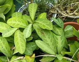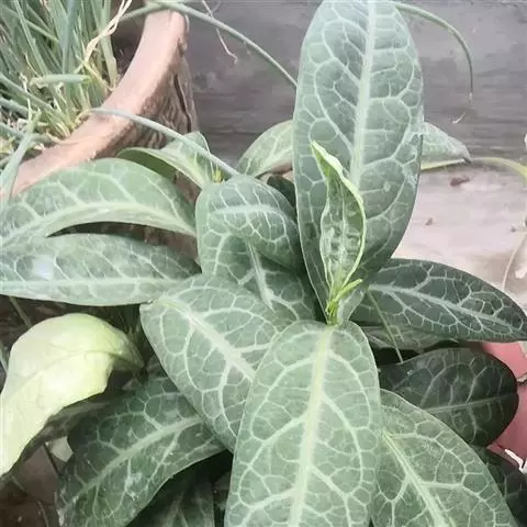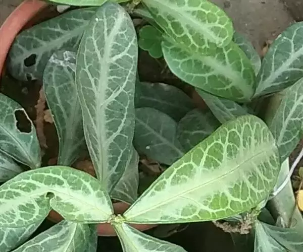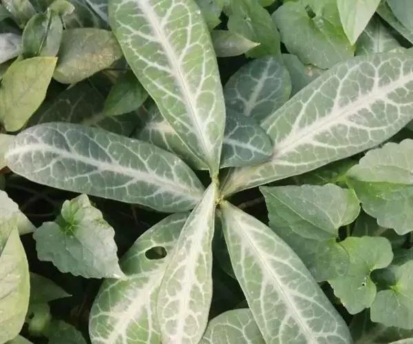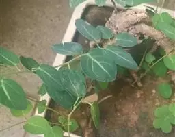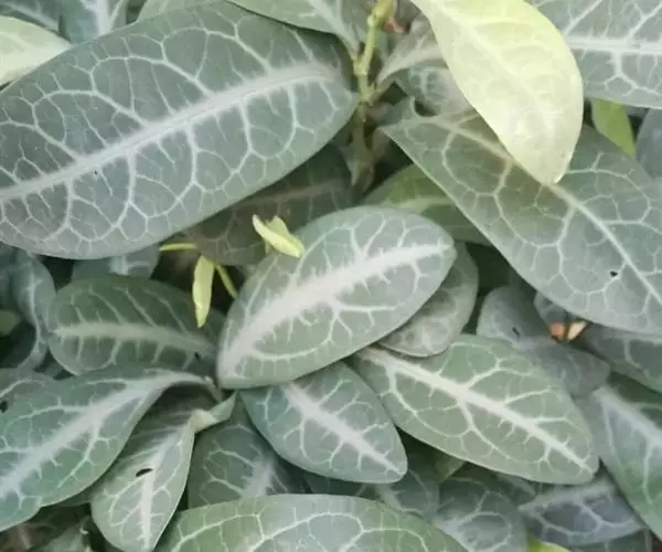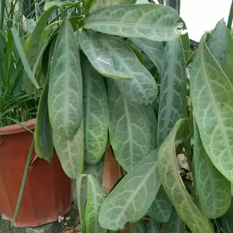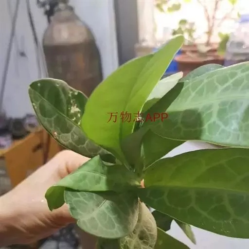 叶通常聚生于小枝上部,常向下弯垂,叶片鲜时近肉质,干后近革质或厚纸质,匙形、倒卵状长圆形或卵形,有时长圆形,长4.5-16.5厘米,宽2.5-6.3厘米,顶端浑圆或钝,有小凸尖,稀凹缺,基部楔形或钝,稀圆形,上面鲜时深绿色,叶脉处呈灰白色,干时黄白色,通常无毛,有时下面基部有腺状短柔毛,后变无毛;中脉和侧脉在鲜叶时扁平,干后中脉两面均凸起,侧脉每边6-9条,下面稍凸起;叶柄长2-5毫米,初时被腺状短柔毛,老渐无毛;托叶三角状耳形,着生于叶柄基部两侧,长4-8毫米,基部宽3-4毫米,宿存。