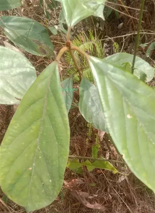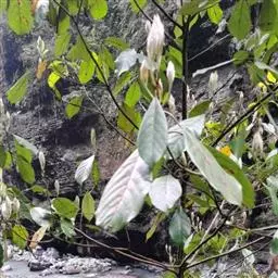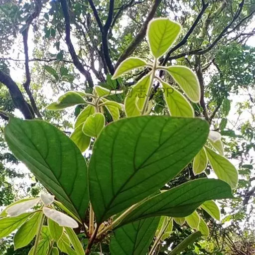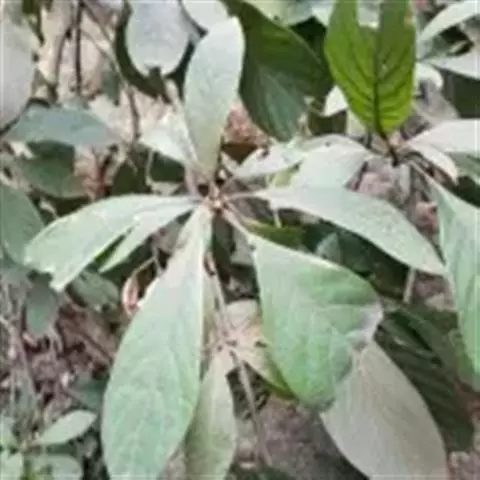小枝、叶柄及花序密被黄褐色或灰黑色柔毛或绒毛。叶革质,倒卵形、椭圆状倒卵形或阔倒披针形,长8-27厘米,宽3.5-9厘米,通常长12-18厘米,宽4-7厘米,先端突渐尖或突尾状渐尖,基部渐狭,上面完全无毛或沿脉上有毛,下面密被黄褐色长柔毛,少为短柔毛,中脉和侧脉上面下陷,侧脉每边8-13 条,弧形,在边缘联结,横脉及小脉多而密集,结成明显网格状;叶柄长1-2.5厘米。