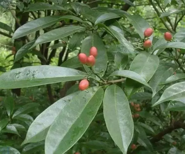 核果椭圆形至长圆状卵形,稍扁,幼果绿色,转黄色,熟时为红色,长1-2厘米,径0.6-0.8厘米,先端明显具鳞脐,通常在成熟时被细柔毛,内果皮薄,具皱纹,胚乳具臭味,长为种子的一半,子叶卵圆形,宽3.5-4毫米,胚根圆柱形,长2毫米。花期4-6月,果期6-8月。