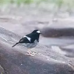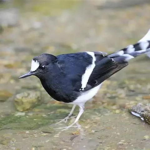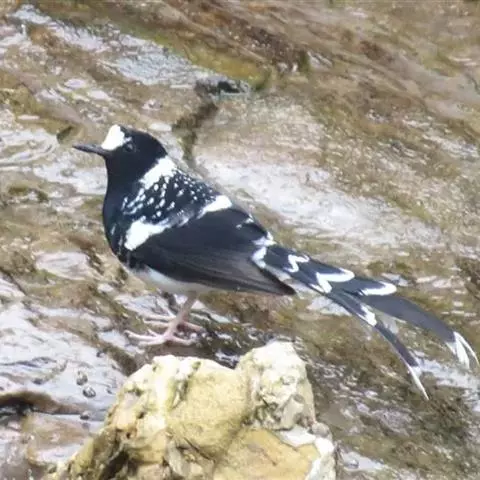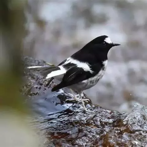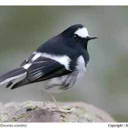 白额燕尾(学名:Enicurus leschenaulti)属中型鸟类,体长25-27厘米。尾长、呈深叉状。通体黑白相杂。额和头顶前部白色,其余头、颈、背、颏、喉黑色。腰和腹白色,两翅黑褐色具白色翅斑。尾黑色具白色端斑,由于尾羽长短不一,中央尾羽最短,往外依次变长,因而使整个尾部呈黑白相间状,极为醒目。栖息于山涧溪流与河谷沿岸,常单独或成对活动。性胆怯,平时多停息在水边或水中石头上,或在浅水中觅食,主要以水生昆虫和昆虫幼虫为食。分布于印度东北部、孟加拉国、缅甸、泰国、老挝、越南、马来西亚,印度尼西亚和中国。