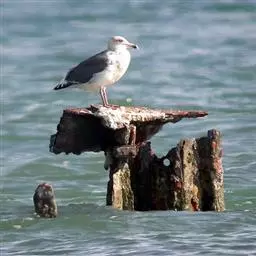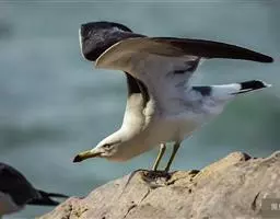 灰背鸥大型水鸟,体长62~69厘米。嘴直,黄色,下嘴先端有红色斑。脚粉红色,头、颈和下体白色,背、…
