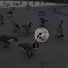 4月中旬成群向繁殖地集中,争相占据巢域,选择巢位并可明显看出成对活动,互相追逐开始交尾,交尾在巢域或巢内进行,雄鸟起主导作用,若雌鸟接受时,即站立不动,两翅稍松,头稍后昂,尾羽翘向一侧,这时,雄鸟即跳到雌鸟背上进行交尾,频频扇动双翅,泄殖腔互相接触2-3次,每次交尾时间为3-6分钟。明天交尾1-3次,持续整个卵期。巢位选妥后,雄鸟、雌鸟轮流用前爪和嘴在地面挖掘,2-3天后地面形成一个小圆坑,平均直径约21.9厘米(17-26厘米)、深约5.3厘米(3.6-6.7厘米)。巢完成后呈碟状,外径约33厘米,内径约20厘米,深约5厘米。