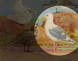 银鸥又名黑背鸥、淡红脚鸥、黄腿鸥、鱼鹰子和叼鱼狼等,全长约60厘米。体型厚重,头部平坦。夏羽头、颈…