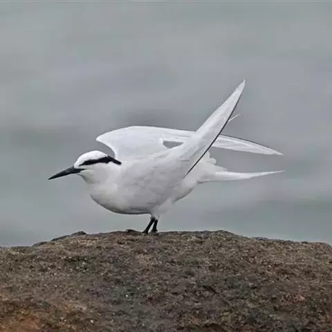 鸥嘴噪鸥,中型水禽,体长31~39厘米。夏羽额、头顶、枕和头的两侧从眼和耳羽以上黑色。背、肩、腰和…