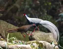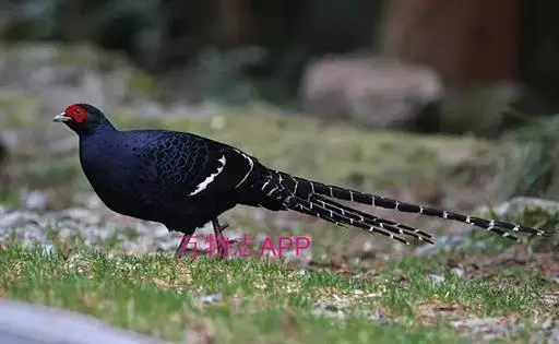 黑长尾雉(学名:Syrmaticus mikado)大型鸡类,体长53~88厘米。雄较雌大。雄鸟通体紫蓝色,脸鲜红色,翅上有一条显著的白色翅斑,尾甚长,黑色,具显著的白色横斑,脚绿褐色。雌鸟通体橄榄褐色,脸红色,背和翅满布棕褐色斑纹和灰白色羽缘,脚绿褐色,尾棕栗色,具黑色横斑。相似种蓝鹇脚鲜红色,雄鸟上背和中央尾羽白色,头具白色冠羽;雌鸟上下体均无白斑,腹具“V”字形暗褐色斑,脚亦为鲜红色,区别均甚明显,野外容易辨识。