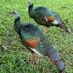 眼斑吐绶鸡:是火鸡科的两种鸟类之一。体型比普通火鸡略小些,体长1米左右,体重2.4-5.4千克,…