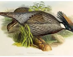 黄腹角雉:是鸟纲、雉科中国特产的一种鸟类。体长约50-65厘米。雄鸟上体栗褐色,…