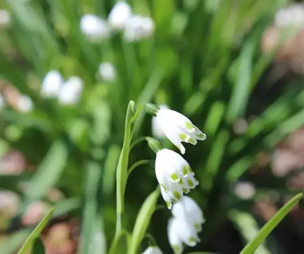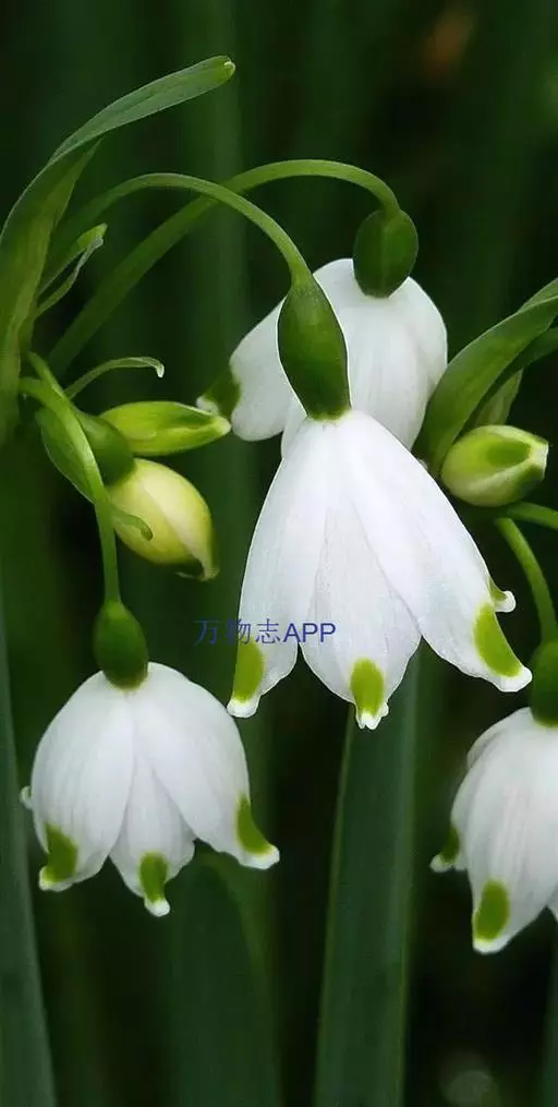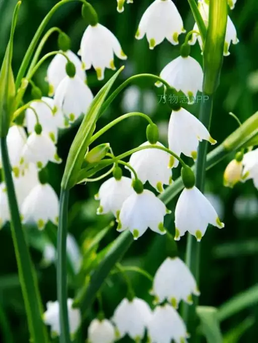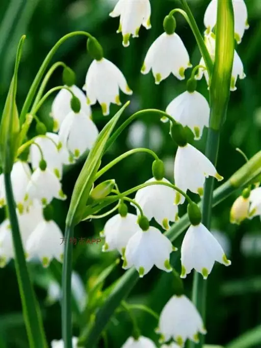 夏雪片莲是石蒜科雪片莲属,多年生球根植物。植株高24~36cm。叶深绿、长剑形。花茎细长,顶端白色花冠下垂,呈灯罩形,各花瓣的端尖都带有绿色的斑纹。花期为晚春至早夏。喜欢全日照。此种植物花形十分美丽动人,是喜欢极湿条件的球根花卉之一。虽然是沼泽园中常见的一种植物,但在野外多生于溪流边沿。