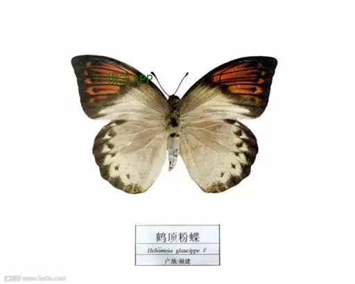 鹤顶粉蝶 (Hebomoia glaucippe Linnaeus)是粉蝶科鹤顶粉蝶属的一种蝴蝶。鹤顶粉蝶是我国的粉蝶当中体型最大的一种。它们的卵特别大,是国产蝴蝶中最大的,其卵长达3mm。幼虫也是国产粉蝶中最大型的,体长可达76mm;在广州,它们每年可发生近十个世代。成虫由春天的3月末至入冬的12月末都可见其疾飞的身影,是粉蝶中飞行最快的蝶种。其前翅顶端的红斑特别引人注目。