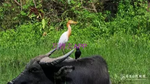 牛背鹭和水牛之间互利共生的情况,非常有趣。牛背鹭栖息在水牛背上,可以捕食牛背上的寄生虫,和因水牛走动而被惊扰飞出来的小虫;而水牛一方面靠牛背鹭赶走身上的蝇虫,另一方面牛背鹭为水牛担任警卫任务。