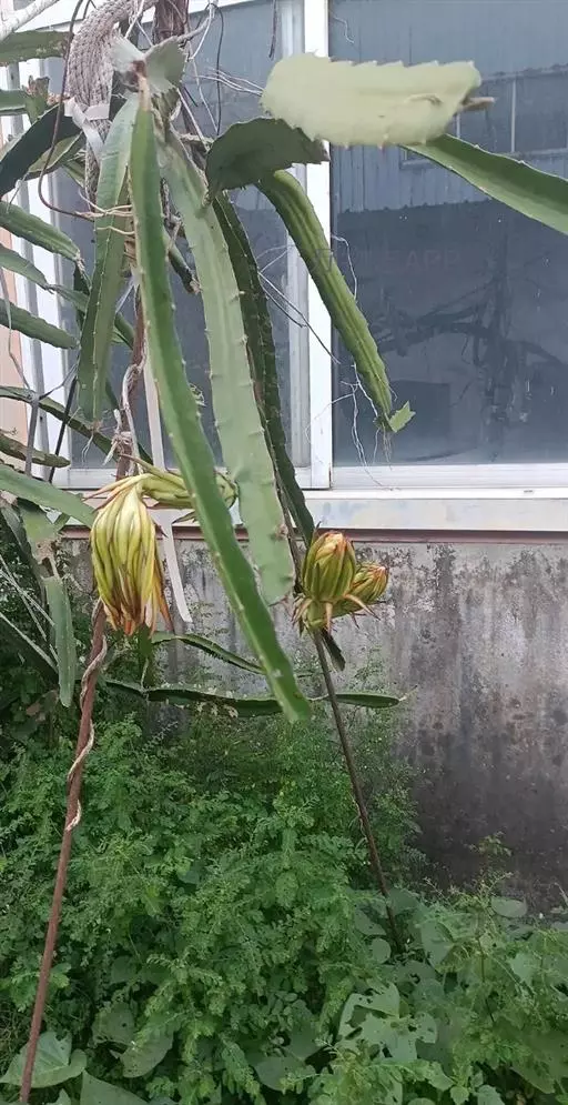 4.修剪枝条:每年采果后剪除结过果的枝条,让其重新发出新枝,以保证来年的产量。火龙果种植方式多种多样,可以爬墙种植,也可以搭棚种植,但以柱式栽培最为普遍,其优点是生产成本低、土地利用率高。