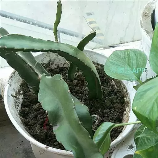 火龙果为多年生攀援性的多肉植物。植株无主根,侧根大量分布在浅表土层,同时有很多气生根,可攀援生长。根茎深绿色,粗壮,长可达7米,粗10-12厘米,具3棱。棱扁,边缘波浪状,茎节处生长攀援根,可攀附其他植物上生长,肋多为3条,每段茎节凹陷处具小刺。由于长期生长于热带沙漠地区,其叶片已退化,光合作用功能由茎干承担。茎的内部是大量饱含粘稠液体的薄壁细胞,有利于在雨季吸收尽可能多的水分。