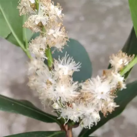 乔木,高可达13米;小枝粗壮,芽、嫩枝、叶柄、叶背中脉均被红褐色绒毛。叶纸质,椭圆形、倒卵状椭圆形或狭椭圆形,长9-27厘米,宽3-10厘米,先端急尖或渐尖,基部阔楔形或近圆形,叶背被柔毛,毛的基部有褐色腺状斑点,边缘有细锯齿或近全缘;中脉在叶面凹下,侧脉每边7-13条;叶柄长1-2厘米。穗状花序长6-11厘米,近基部3-5分枝,花序轴、苞片、萼均被红褐色绒毛;苞片卵形,长约3毫米,小苞片三角状卵形,长约2毫米,背面中肋凸起;花萼长2-3毫米,5裂,裂片卵形,与萼筒等长;花冠有芳香,白色或淡黄色,长约5毫米,5深裂几达基部;雄蕊60-80枚,花丝基部联合;花盘圆柱状,无毛;子房3室。核果圆球形,直径5-7毫米,顶端宿萼裂片合成圆锥状,基部有宿存苞片,核具5-8条浅纵棱。花期8-9月,果期10-11月。