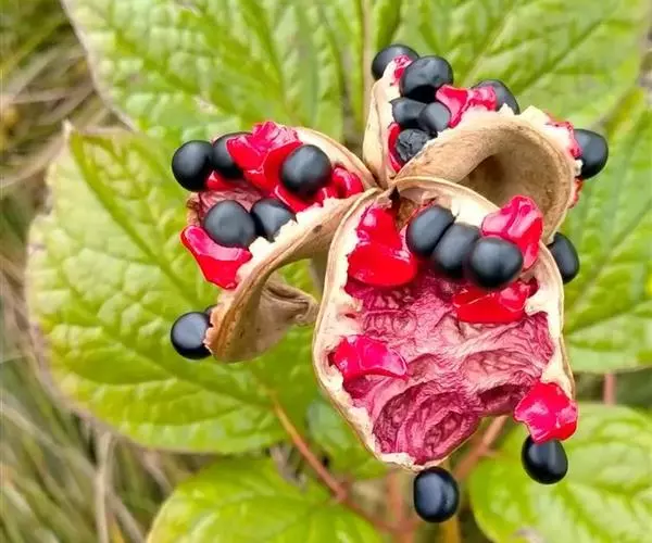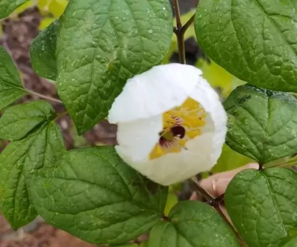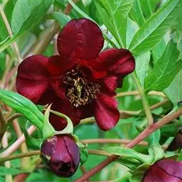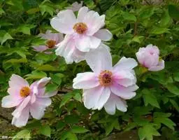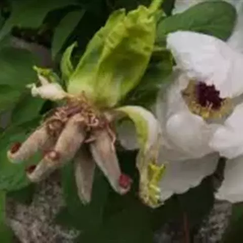 单花顶生,直径7-10厘米;萼片3-5,宽卵形,长1.2-1.5厘米,淡绿色,花瓣6,白色、红色、紫红色,倒卵形,长3-5.5厘米,宽1.8-2.8厘米;雄蕊长1-1.2厘米,花丝淡红色,花药长圆形;花盘浅杯状,包住心皮基部;心皮2-3,无毛。蓇葖卵圆形,长2-3厘米,成熟时果皮反卷呈红色。花期5-6月中旬;果期9月。
