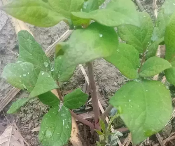 多年生草本。根粗壮,长圆柱形。茎高30-70厘米,无毛,基部生数枚鞘状鳞片。茎下部叶为二回三出复叶;叶片长14-28厘米;顶生小叶倒卵形或宽椭圆形,长9.5-14厘米,宽4-10厘米,顶端短尖,基部楔形,全缘,表面深绿色,背面淡绿色,无毛或沿叶脉疏生柔毛,小叶柄长1-2厘米;侧生小叶比顶生小叶小,同形,长5-10厘米,宽4.5-7厘米,具短柄或近无柄;茎上部叶为三出复叶或单叶;叶柄长5-12厘米。