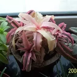 彩叶凤梨 L.B.Sm.) 凤梨科多年生常绿草本。株高25-30厘米,茎短。叶革质,带状,常基生,…