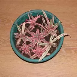 凤梨原株开花前后基部叶腋处产生多个蘖芽,待蘖芽长到10厘米左右,有3-5片叶时,用利刀在贴近母株的部位连短缩茎切下,伤口用杀菌剂消毒后稍晾干,蘸浓度为300-500毫克/千克的萘乙酸,扦插于珍珠岩、粗沙或培养土中,保持基质和空气湿润,并适当遮荫,1-2个月后即有新根长出,可转入正常管理。注意蘖芽太小时扦插不易生根,极易腐烂;太大时分株,消耗营养太多,降低繁殖系数。