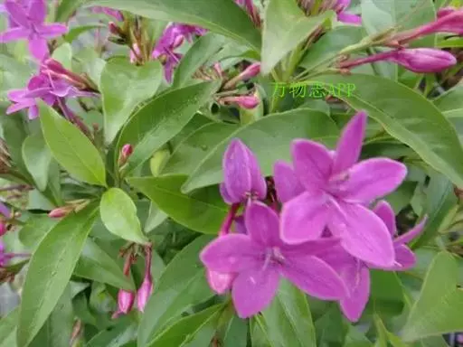 常绿灌木,株高约20~50厘米,分枝较多。叶对生,长椭圆形或披针形,顶端渐尖,基部楔形,全缘。花长筒状,腋生,先端5裂 ,紫红色。花期夏、秋。