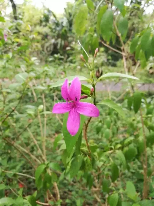 紫云杜鹃并非杜鹃花类,株高约20~50厘米,善分枝。叶对生,长椭圆状披针形,全缘。夏、秋季开花,腋出,花冠长筒状,先端5裂,紫红色;成株易开花,花姿柔美,适合庭园绿篱,丛植或盆栽 。