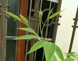 搭架:中国南方每年夏秋经常遇到台风。而鸡冠刺桐生长快,特别是遇到“天兔”、“尤特”等强台风,易刮倒,并产生萌芽,自然株型往往不佳。因此,在当年种植15-20天,当苗高10-15厘米时,先在苗木的旁边搭高2.5米左右竹竿支撑苗木,引导苗木直立生长;当苗高75-100厘米时,搭横竹与竖竹成十字支架,固定竹棚;苗每长高50厘米,用尼龙绳或小布条将主干与竖竹捆扎1次,有效引导苗木直立生长。