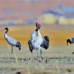 黑颈鹤:是鹤科、鹤属的大型涉禽,体长110-120厘米,体重4-6千克。颈、脚甚长,通体羽毛灰白色,…