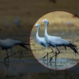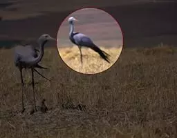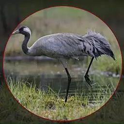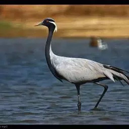 蓑羽鹤大型涉禽,体长68~92厘米,是鹤类中个体最小者。通体蓝灰色,眼先、头侧、喉和前颈黑色,…
