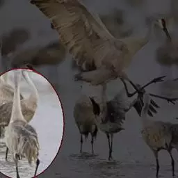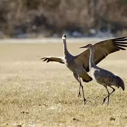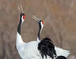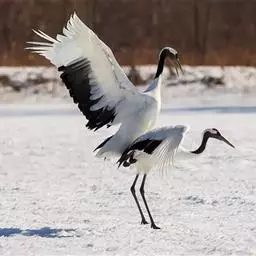 2月,已经有北迁的冲动,开始为回到繁殖地做准备。白头鹤的婚配是一雌一雄制。虽然它们在越冬地也是形影不离,但没有在越冬地交配的记录。偶尔的舞蹈和不同家庭的成员相互驱逐,维系着稳定的配偶关系。