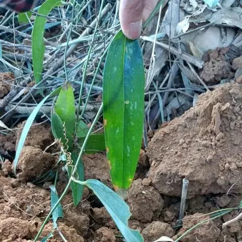菝葜,菝葜科菝葜属 多年生藤本落叶攀附植物,茎干较粗,嫩白色,呈圆柱形,表面带有小刺;叶子较大,…